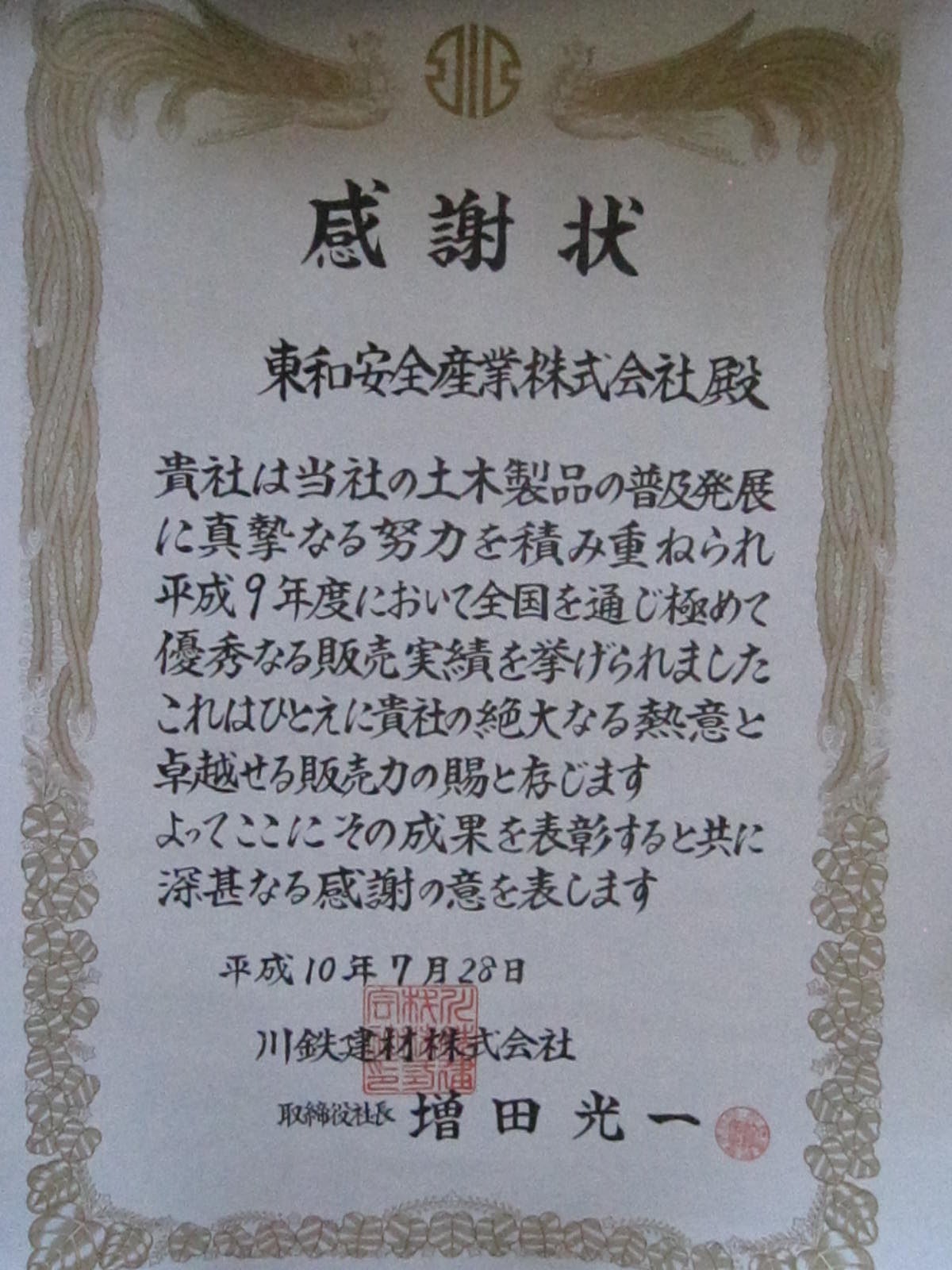 表彰状・感謝状